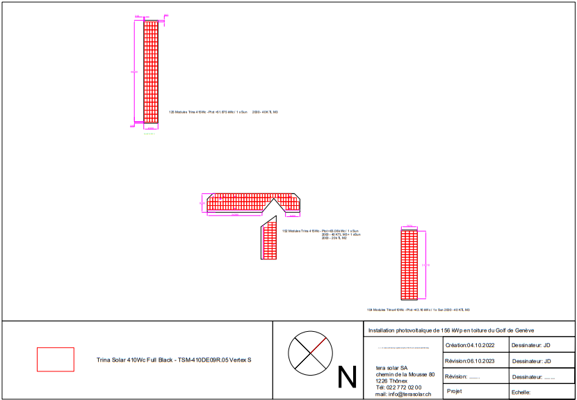 Installation photovoltaïque sur trois toitures distinctes d’un golf