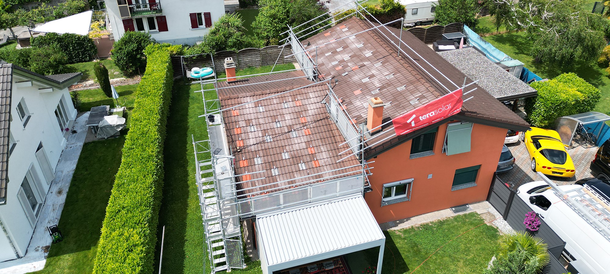 Cette étape cruciale a permis d'établir un plan d'implantation optimal pour les 24 modules photovoltaïques, répartis entre la toiture inclinée en tuile et la toiture plate de l'abri voiture.